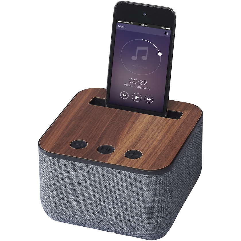 Eksklusiv bluetooth-højtaler med virkelig god lyd. Højtaleren har en konstruktion af træ og stof. Trods sit diskrete ydre er det en kraftfuld højtaler på hele 5 watt. Kingston har en indbygget mikrofon hvilket muliggør konferencesamtaler.På oversiden findes et opbevaringsrum til din mobil. Mikro-USB-kabel og 3,5 mm audio-kabel medfølger. Klarer at spille på maksimal volume i op til 3 timer. Leveres i gaveæske.