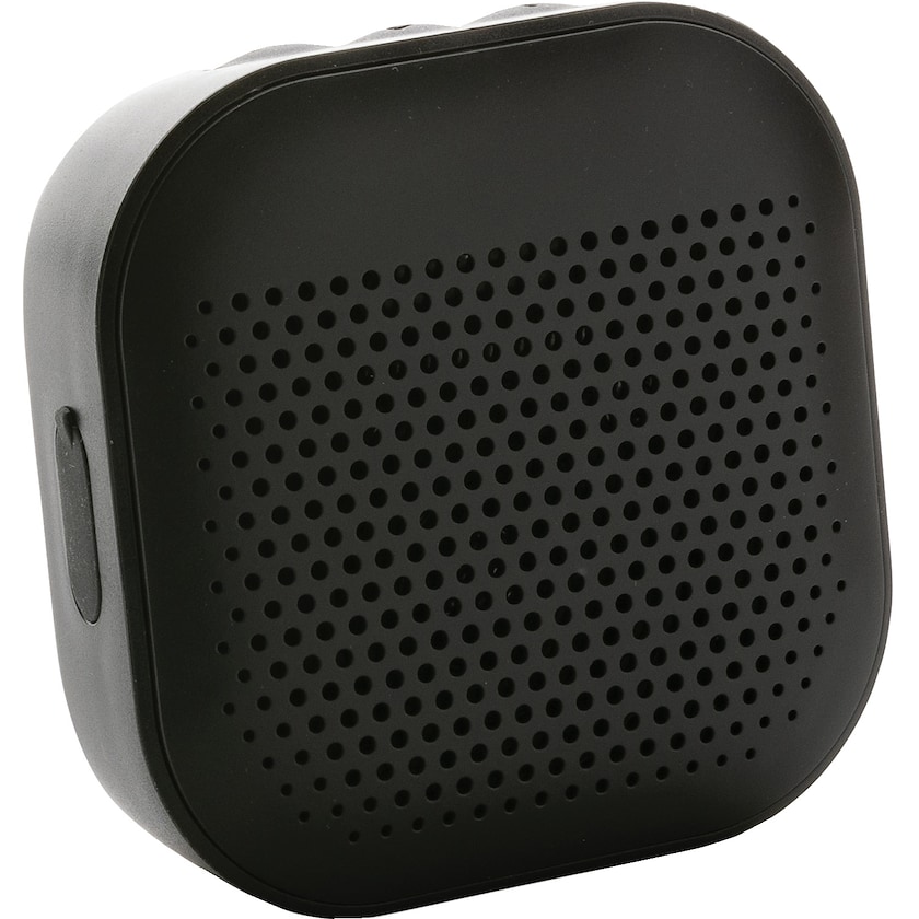 Kompakt trådløs højttaler af genbrugs ABS. Spilletiden er op til 3,5 timer på en opladning. Højttaleren anvender BT5.3-forbindelse for førsteklasses lyd og den operative afstand er 10 meter. IPX5-vandtæt. Kan tage imod telefonopkald. Leveres i en papæske af FSC-certificeret papir.
