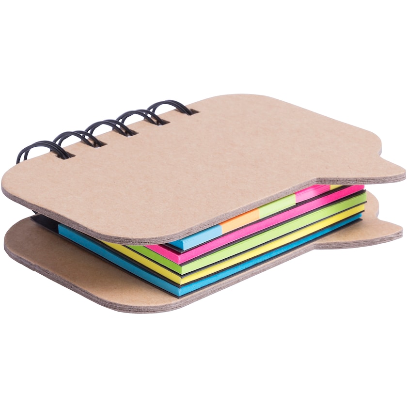Post-it sedler med omslag formet som en taleboble. Sættet indeholder både post-its og selvklæbende notesblok. Tryket sker på omslaget.