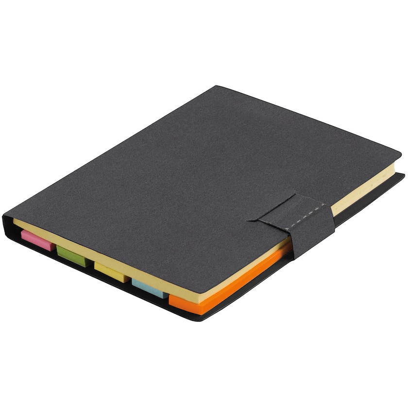 Sæt med faneblade og notesblok. Fanebladene og de to notesblokke indeholder hver 25 ark. Det sorte sæt har en sort inderside, mens det naturfarvede og blå sæt har en hvid inderside.
