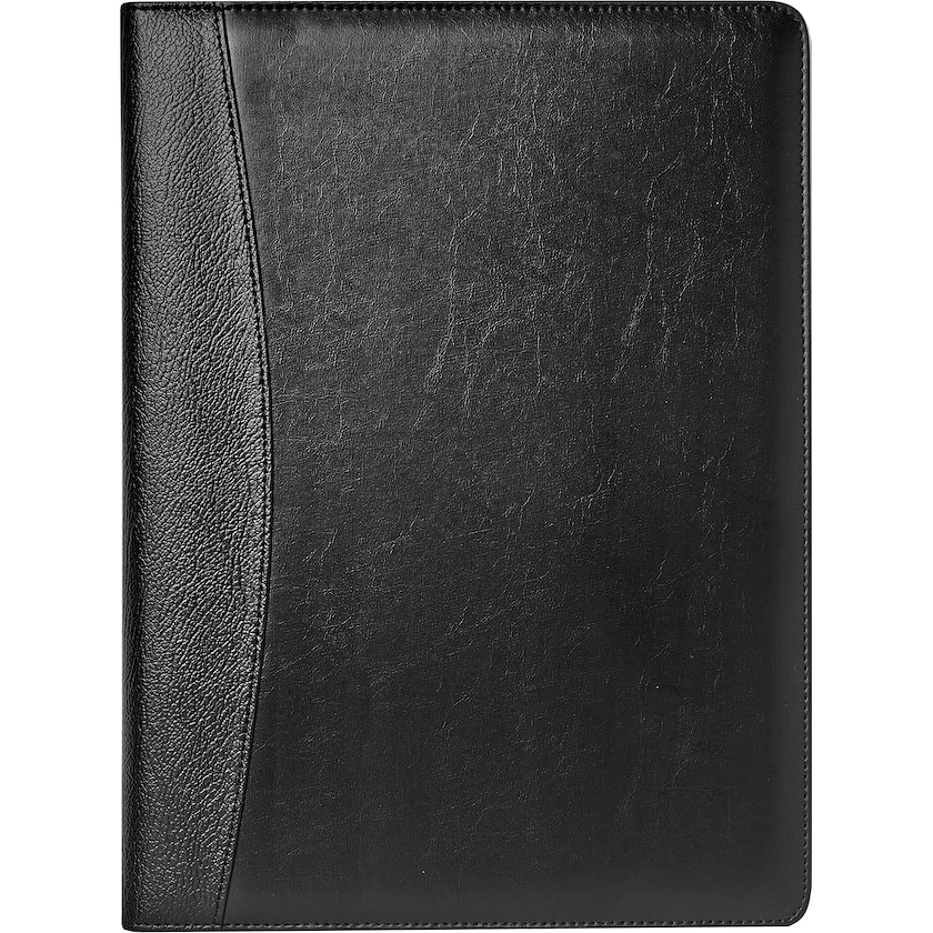 Konferencemappe med minilommeregner, kuglepen og notesblok. Minilommeregneren er solcelledrevet og notesblokken har 20 linierede ark.