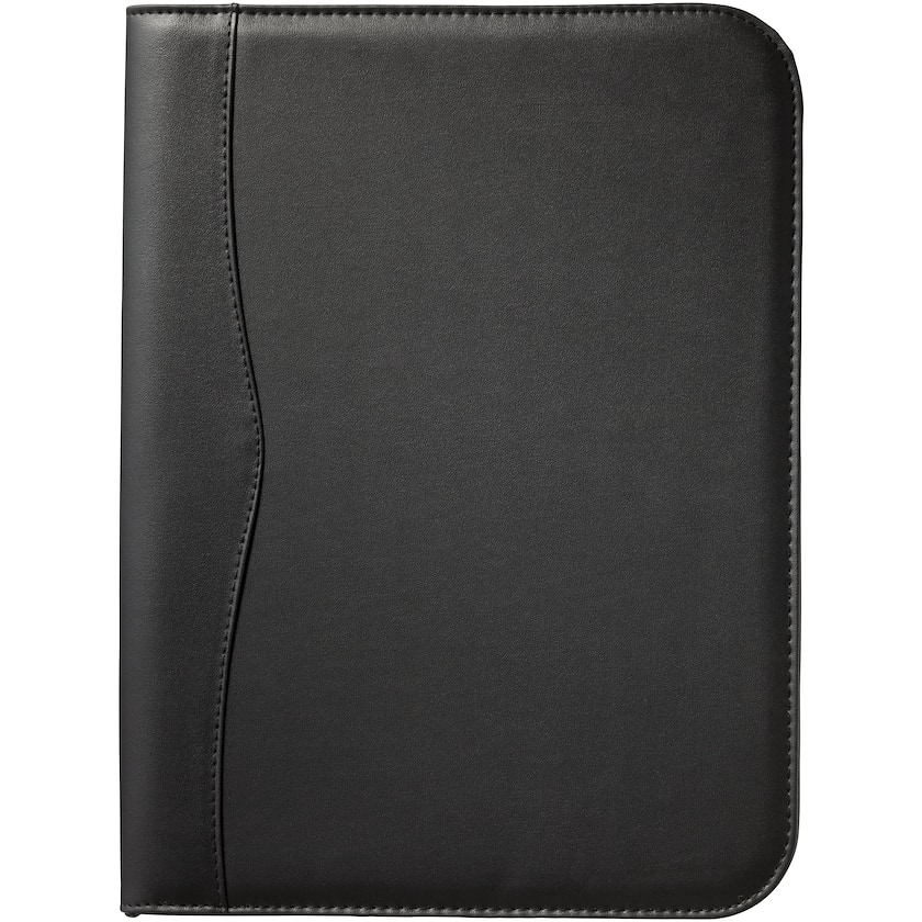 Farverig konferencemappe med lynlås. Mappen har et dokumentrum, kuglepensholder, lynlås og en notesblok med 20 linierede ark. Kuglepennen og tilbehøret medfølger ikke. Trykket kan maksimalt ske med én farve.