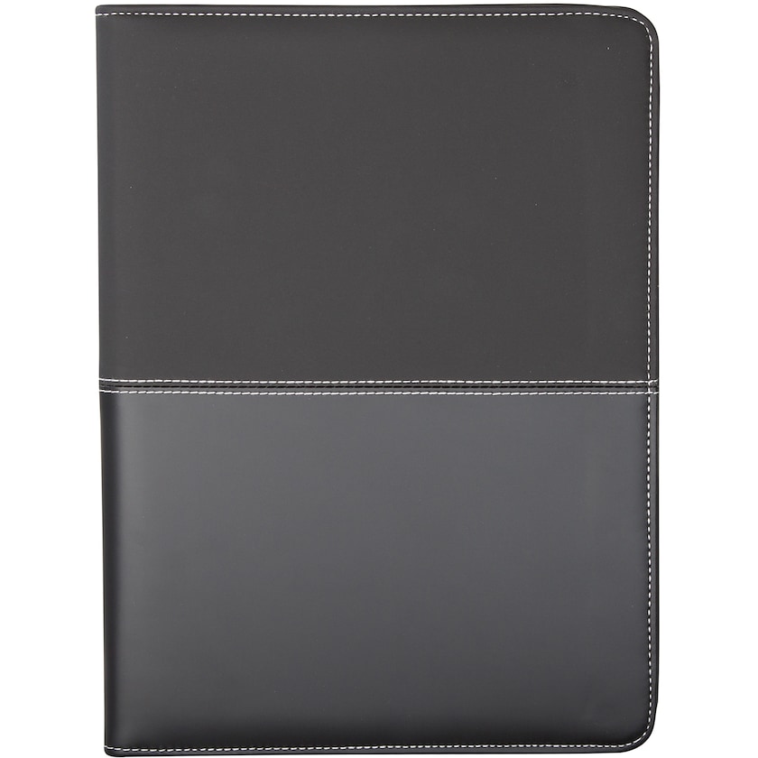 Konferencemappe med en stilrent ydre og flotte kontrastfarvede syninger. Indvendigt er en notesblok med 20 sider, holder til kuglepen og visitkortlommer. Mappen kommer med lynlås. Trykket kan maksimalt laves i to farver.