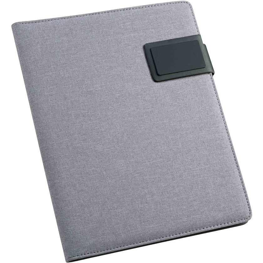 Konferencemappe i A5-størrelse med omslag i stof og kunstlæder. Mappen lukkes ved hjælp af en magnet. Indvendigt findes en notesblok med 20 linjerede sider. Metalpladen på mappens forside kan lasergraveres. Kuglepen og øvrige accessories medfølger ikke.