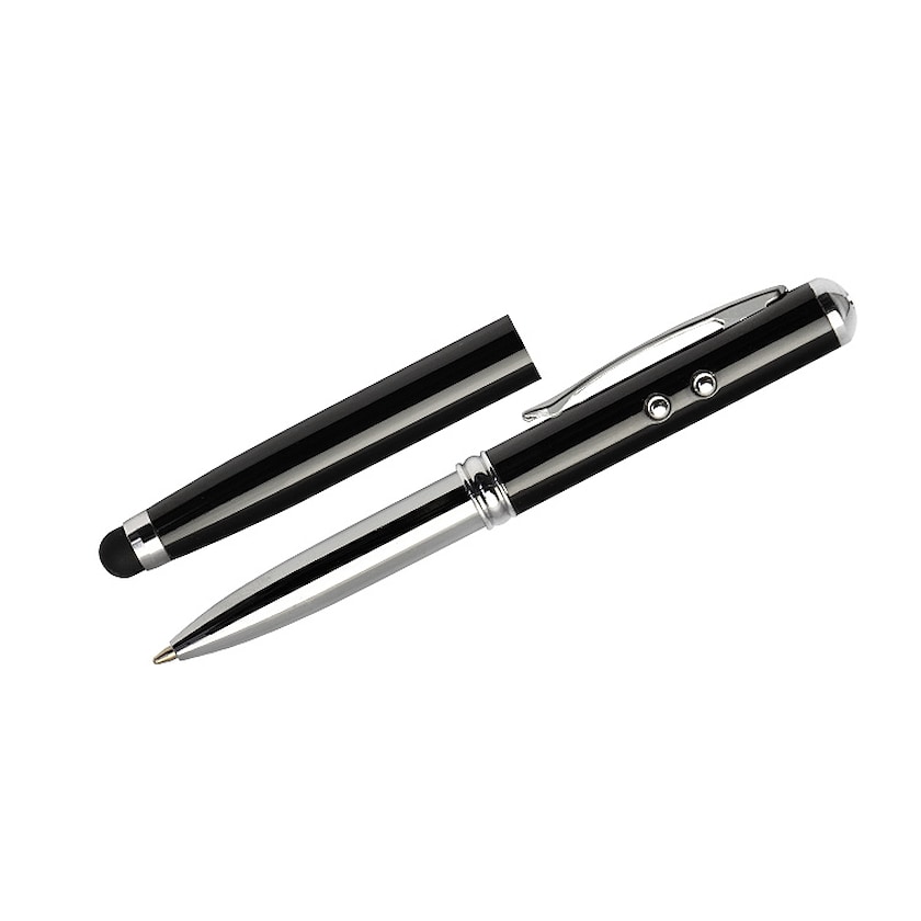 Laserpeger med touchfunktion, kuglepen og lommelygte.