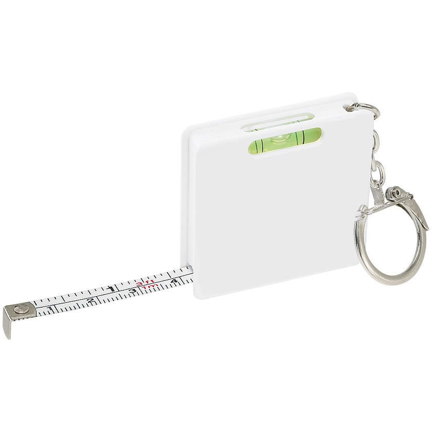 Praktisk 1 meters målebånd med vatterpas og nøglering.