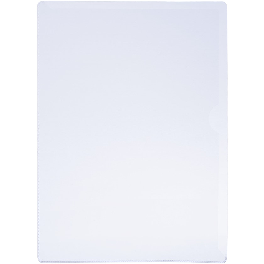 Praktisk mappe med tommelfinger greb i glasklar PVC og A4 størrelse. Tykkelse 0,12 mm.