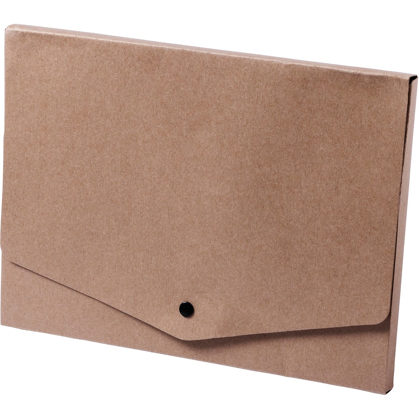 Papirsmappe i genbrugspapir. Isolde har god plads til dokumenter og låget kan holdes lukket ved hjælp af en knap.