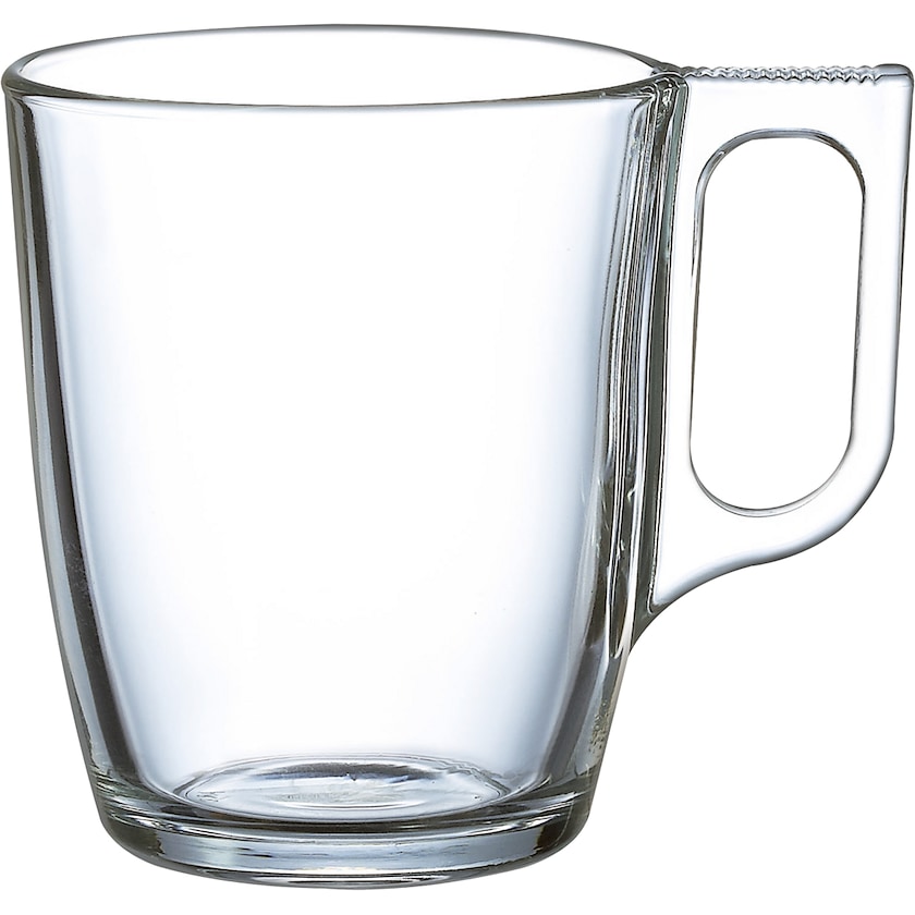 Glaskrus med karakteristisk hank. Fremstillet af højkvalitet, hærdet glas som er perfekt for kaffe og te. Tåler maskinvask og mikroovn. Fremstillet i Europa.