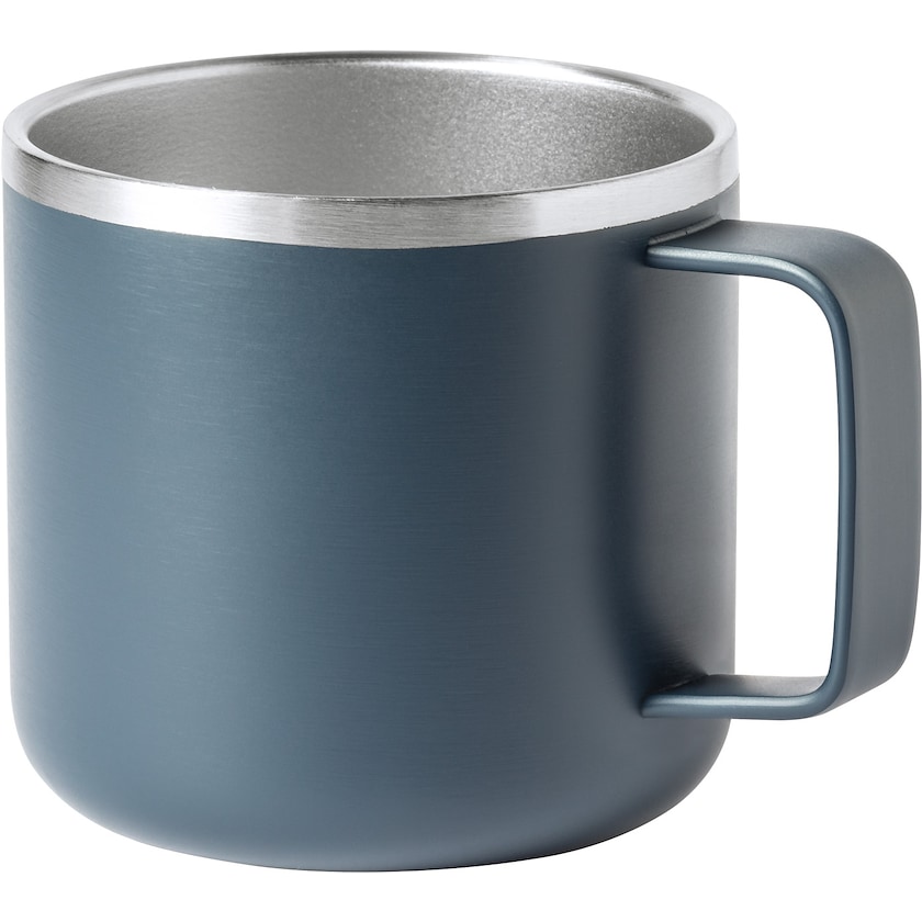 Krus af rustfri stål med dobbelte vægge. Pga. de dobbelte vægge holdes varme drikke varm i lang tid. Mærkning kan enten laves med tryk eller lasergravering.