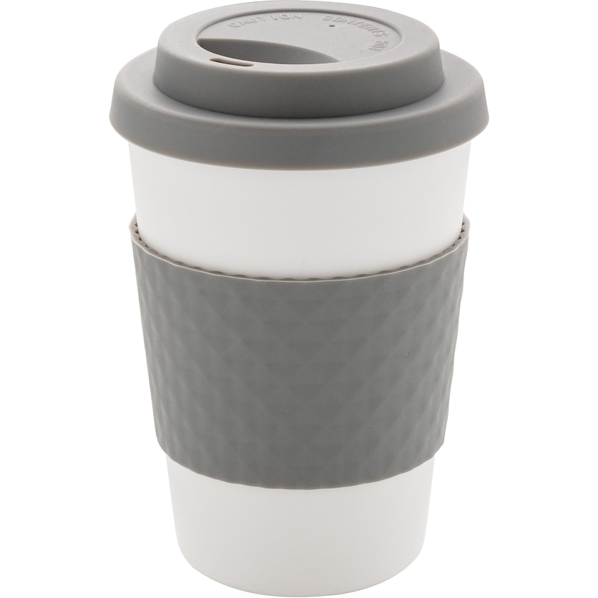 Take-away krus med greb og låg af silikone. Kruset rummer 27 cl. Kruset tåler mikroovn og maskinopvask. Passer til de fleste kaffeautomater.