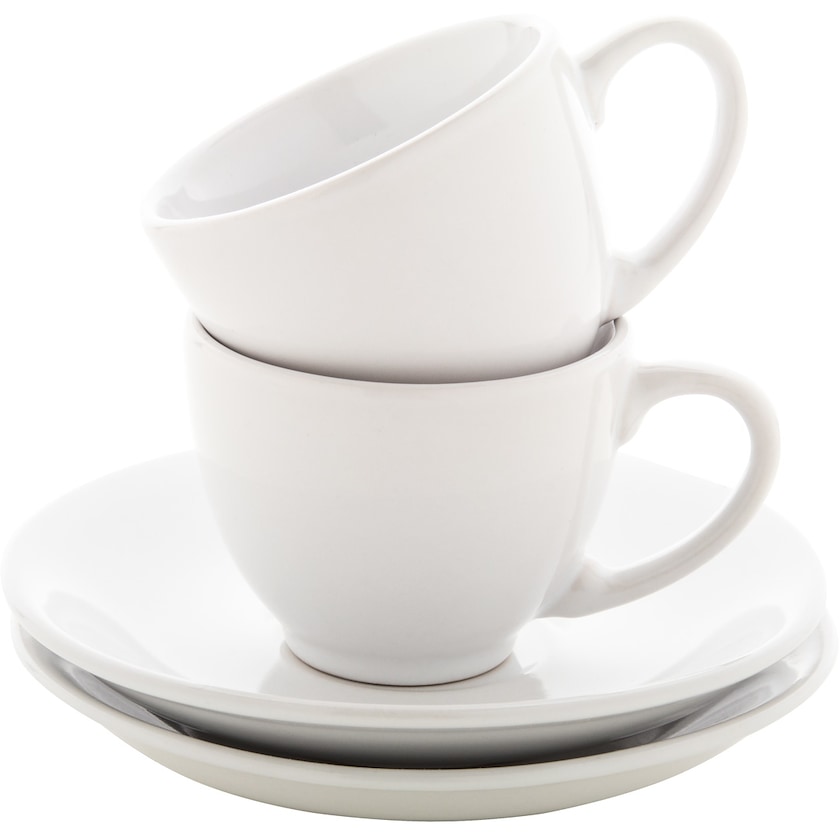 Espressokop med tilhørende underkop. Belluno er lavet af ægte porcelæn og leveres to og to i hvide papæsker. Koppen rummer 9 cl. Trykprisen henviser til tryk på begge kopper.