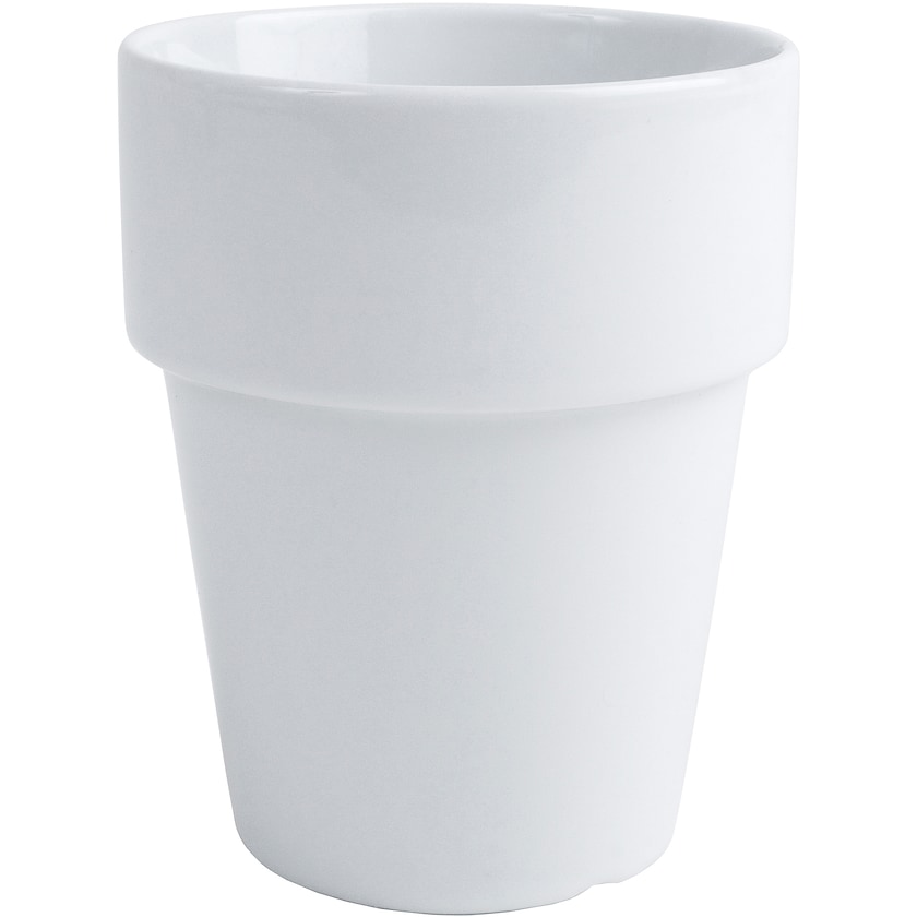 Stabelbart porcelænskrus uden øre. Valencia er et flot krus med blankt ydre. Kruset rummer hele 34 cl. Takket være at kruset er stabelbart, fylder den lidt, der hvor den opbevares. Et perfekt krus til arbejdspladsen!
