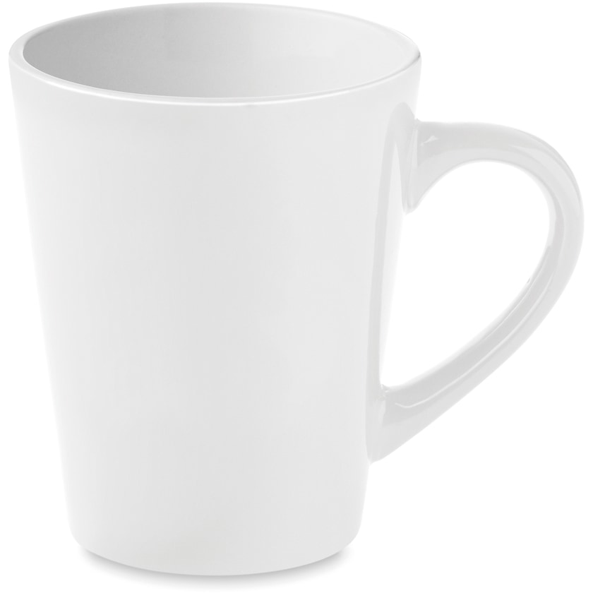 Krus med meget stor trykflade. Tryk er også muligt på krusets inderside og trykfladen er da på 120 x 20 mm. Kruset leveres individuelt pakket i hvidt pap.