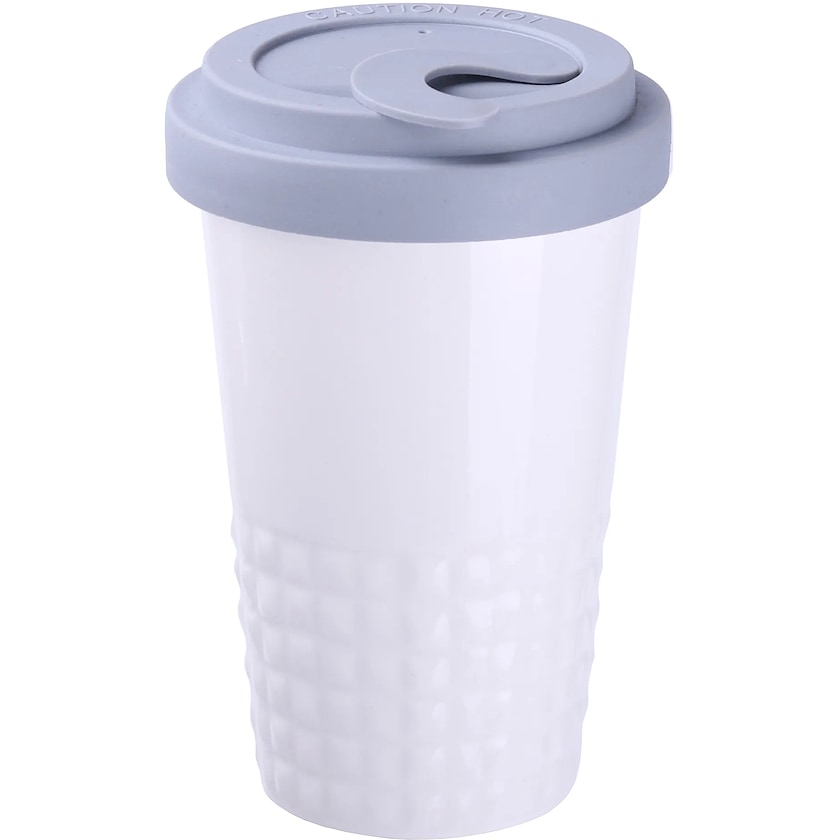Flot designet take away-krus af porcelæn med spildesikkert låg. Porcelænskruset har et unikt designet bund som er lækkert at holde på. Pga. de dobbelte vægge holdes drikken varm længere end normalt. Låget er af gummi.