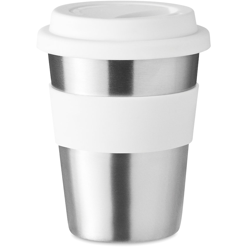 Take away-krus i rustfrit stål med låg og greb i silikone. Kruset rummer 35 cl hvilket er helt perfekt. Hvis du begrænser dig til kun en trykfarve, så er trykfladen på hele 220 x 20 mm, dvs. betydeligt større end normalt.