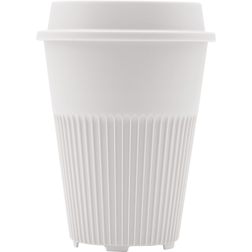 Take away-krus fra Circular & Co. Kruset er holdbart, genanvendeligt, stabelbart og fuldt genanvendeligt. Rillerne forhindrer kruset i at blive unødigt varmt og giver et godt greb. Bunden er hurtigtørrende. Låget har en smart drikkeåbning. Passer i bilens kopholder samt i kaffemaskinen på arbejdet. Fødevaresikker og BPA-fri. Skal sættes i den øverste kurv i opvaskemaskinen.