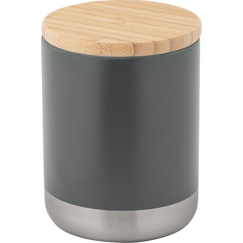 Termokrus af rustfri stål med unikt design. Kruset har dobbelte vægge med vakuumisolering med kobber. Låget er fremstillet af bambus. Holder drikken varm i 5 timer og kold i 24 timer. Mærkning kan enten laves med 1-trykfarve eller lasergravering.