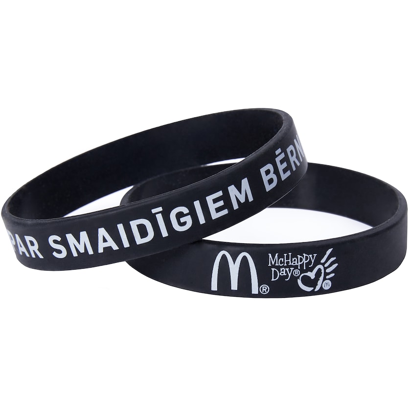 Gummiarmbånd med tryk. Armbåndet har en bredde på 12 mm. Vælg mellem voksen- og børnestørrelse. Du vælger selv hvilken Pantonefarve armbåndet skal have. Trykket laves rundt om hele armbåndet og kan maksimalt laves i to farver. Armbåndet er af topkvalitet og overholder alle sikkerhedskrav i henhold til gældende lovgivning.