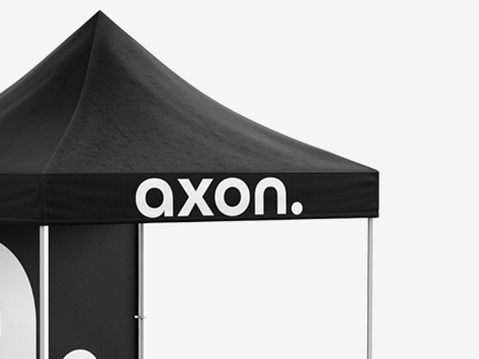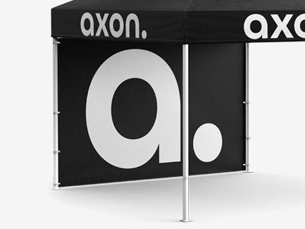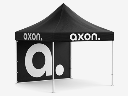Axons festtelte med logo kan bruges både udendørs og indendørs. Teltene kan modstå vind på op til 29 km i timen, og stofferne er fuldstændig vandtætte.