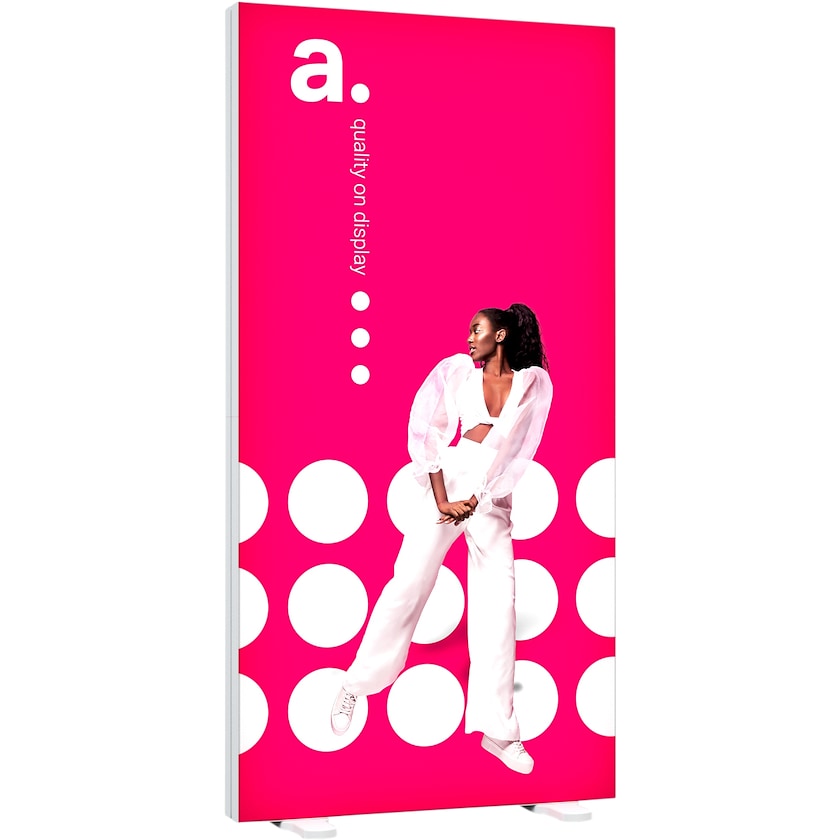 Fritstående, dobbeltsidet lysboks. Et godt alternativ til en rollup! Lysboksen er fremstillet af holdbart PVC og monteres helt uden værktøj. Både for- og bagside forsynes med dit logo. Ønsker du en gang i fremtiden at udskifte motivet så bestiller du blot et nyt motiv hos os. En praktisk opbevaringstaske følger med.