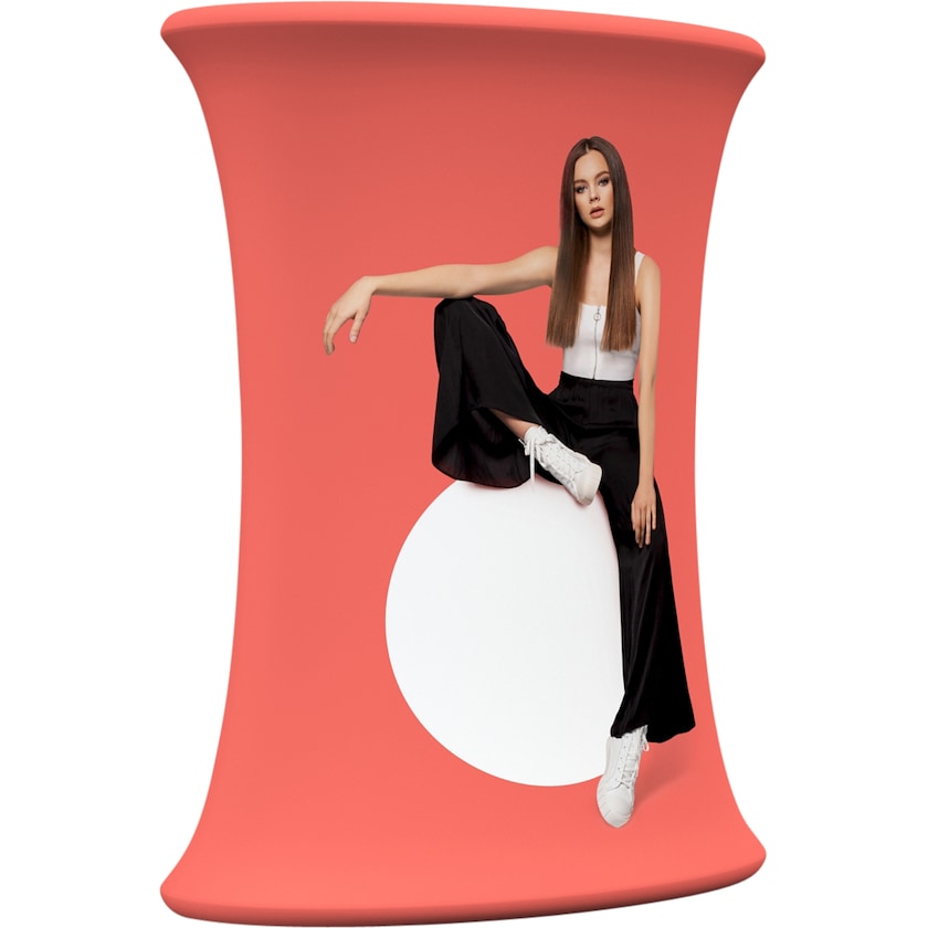 Smart messebord som kan foldes ud på kun 3 sekunder. Inden brug første gang, monteres stoffet på konstruktionen ved at stoffet trækkes henover konstruktionen og fastgøres til silikonekanten. Når det er gjort kan messebordet foldes ud ved et enkelt løft i bordoverfladen. Pga. dets hydrauliske system kræves der næsten ikke nogen styrke og det tager kun 3 sekunder. Når messebordet ikke anvendes kan det opbevares i den taske der følger med. Stoffet kan alt efter behov separat så at messebordets motiv kan fornys.