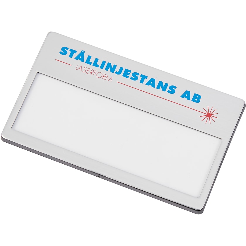 Navneskilt med masser af plads til at skrive navn. Arena har en sikkerhedsnål på bagsiden og fås i mange forskellige farver.