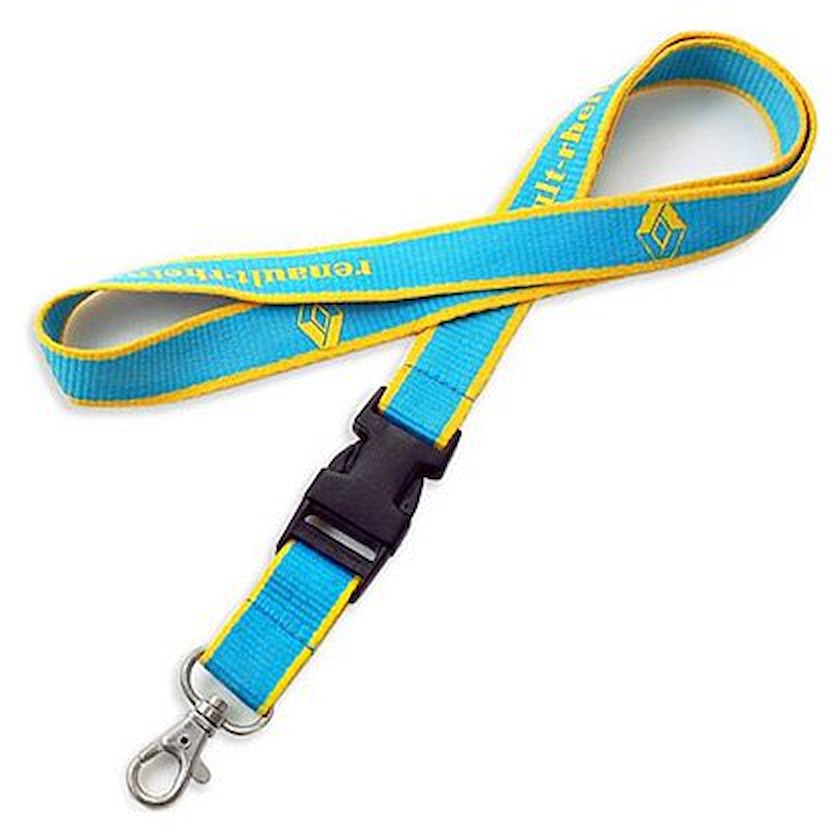 Trykt keyhanger med kontrastkant i anden farve. Du bestemmer selv keyhangerens farve (fx efter Pantonekode). Dette tæller ikke som et tryk og helt er gratis. Vælg mellem 10, 15 eller 20 mm bredde og meget tilbehør.