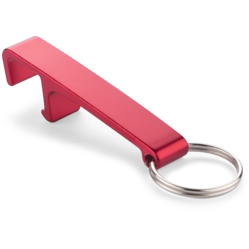 Lille oplukker som også fungerer som mobilholder. Ringen gør at den let kan fæstnes på nøgleringen. Mærkning laves med lasergravering.