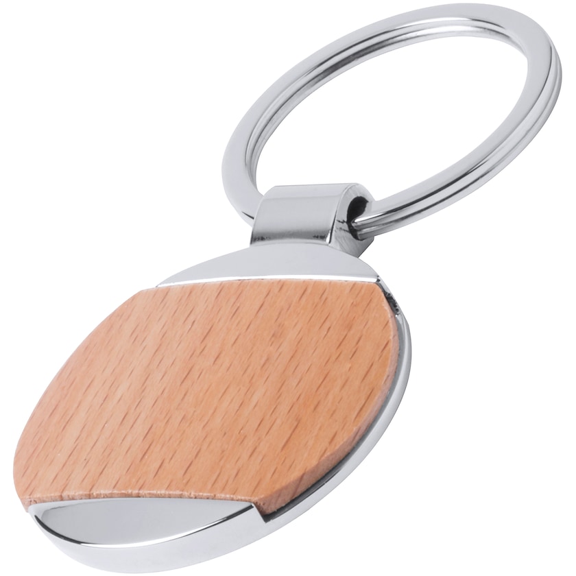 Rund metalnøglering med ægte træindlæg. En flot og unik nøglering!