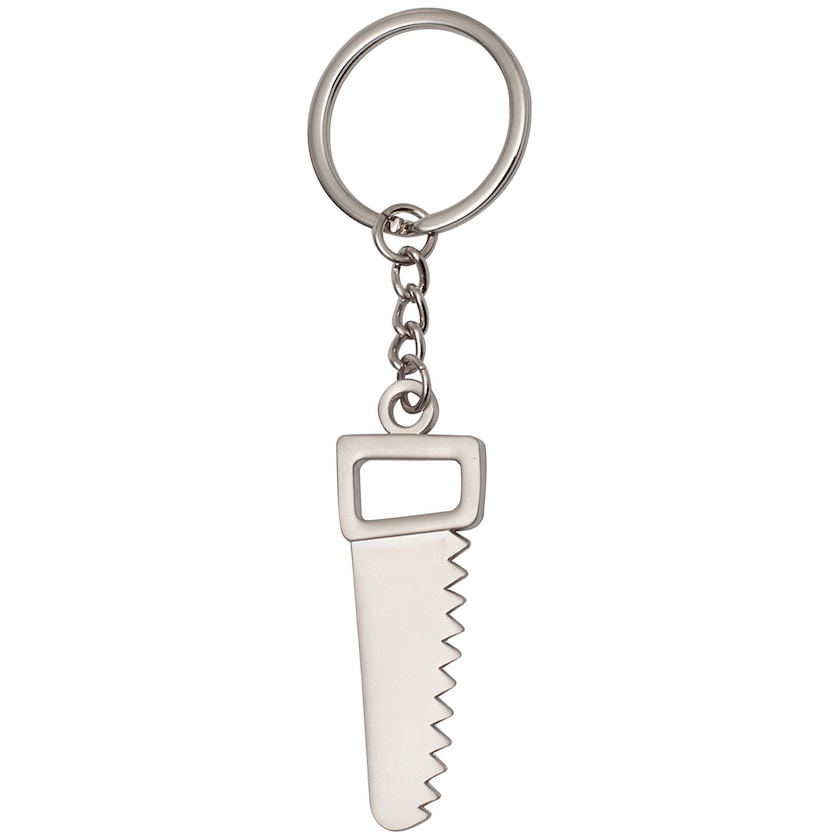 Metalnøglering formet som en sav. Leveres i sort gaveæske.