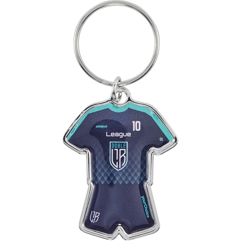 Nøglering designet som et sæt fodboldtøj. Nøgleringen er lavet af metal og fås i farverne guld, sølv og bronze. Dit motiv er digitaltrykt og dækket med et beskyttende lag epoxy. Leveres individuelt indpakket i silkepapir.