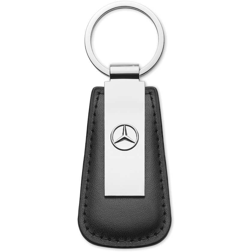 Elegant nøglering i kunstlæder og metal. Kunstlæderet kan fås i mange standardfarver (se skabelon). Din logotype inkorporeres i metallet ved hjælp af embossing.