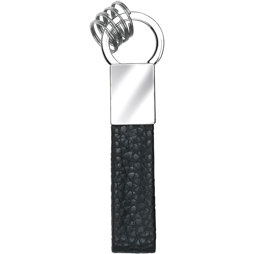 Nøglering i metal og kunstlæder. Nøgleringen er forsynet med mindre ringe. Mærkning laves enten med tryk eller med lasergravering.