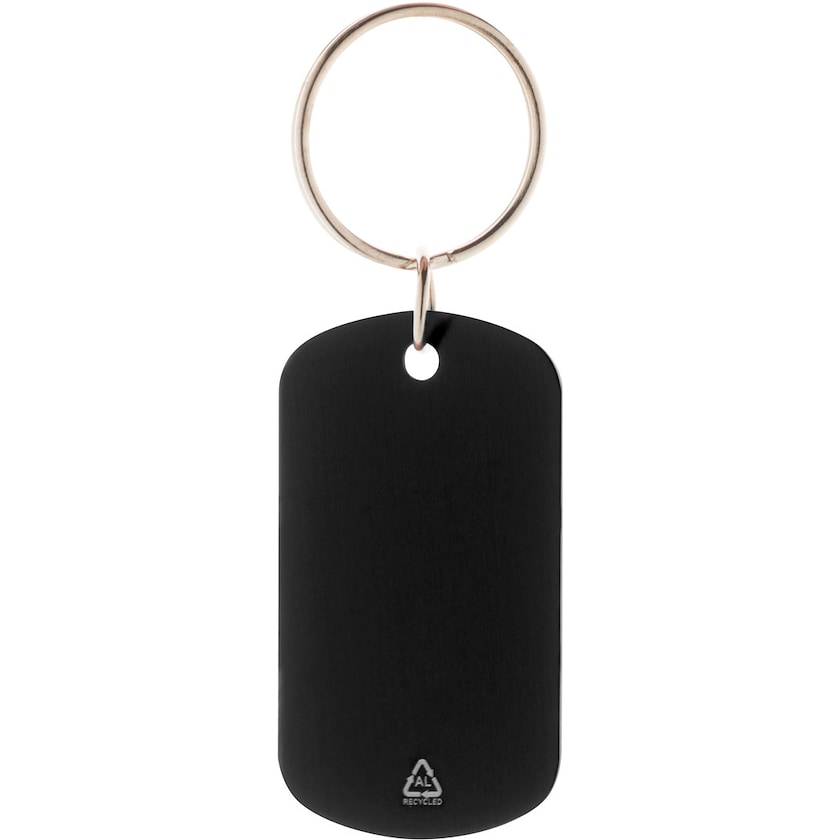 Nøglering af genanvendt aluminium. En enkel nøglering som er et godt miljøvalg. På bagsiden er der et symbol som viser at den er lavet af genanvendt aluminium.