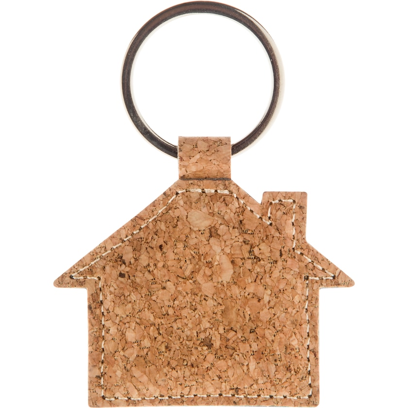 Nøglering af kork formet som et hus. Mærkning kan laves med trykfarve eller lasergravering. Perfekt for ejendomsselskaber, byggefirmaer og ejendomsmæglere.