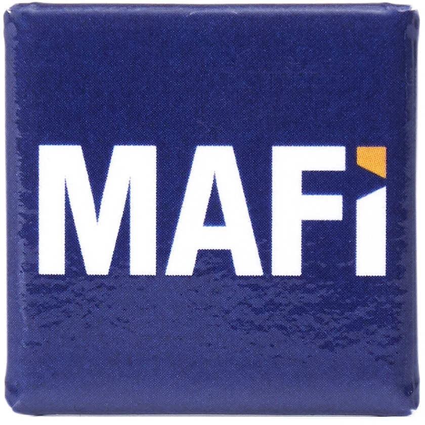 Mindre kvadratisk reklamebadge. Med sikkerhedsnål på bagsiden.