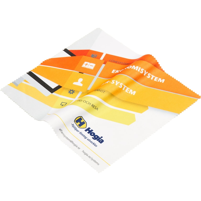 Højkvalitets pudseklud med logo af mikrofiber. Perfekt til anvendelse på eksempelvis mobiltelefoner, briller og computerskærme. Pudsekluden leveres individuelt pakket i plastfolielomme.