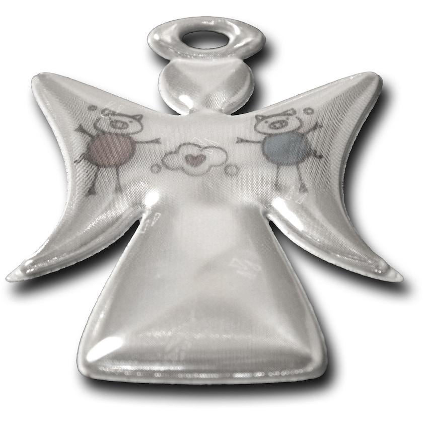 Sød blød refleks udformet som en engel. Bliver enten leveret med snøre og sikkerhedsnål eller drejeled. Refleksmaterialet er fra 3M og opfylder alle krav i henhold til EN13356:2001. Trykket sker under refleksoverfladen for ikke at minimere refleksens ydeevne.