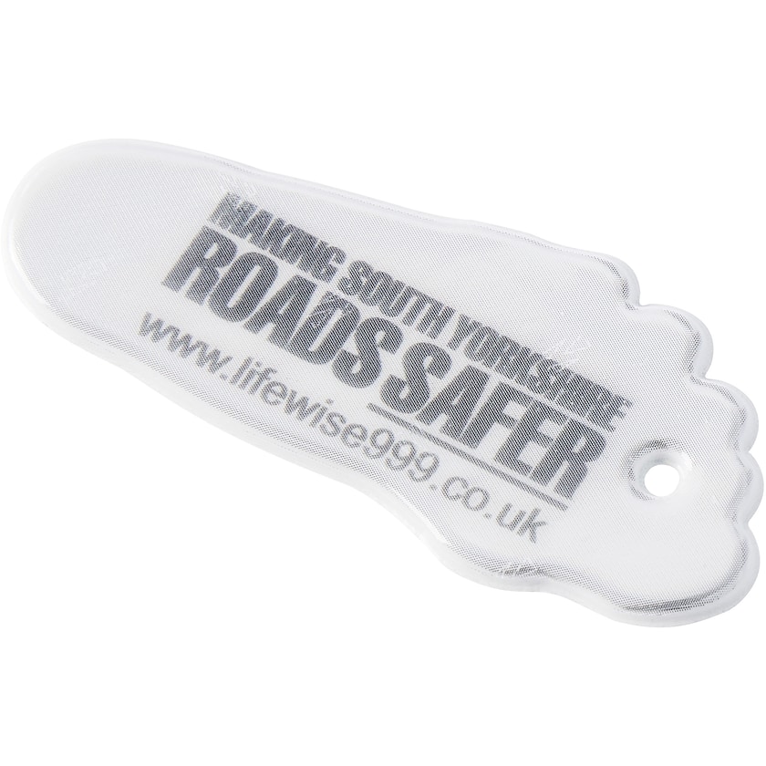 Fodformet blød refleks af højkvalitets refleksmateriale. Leveres enten med snøre og sikkerhedsnål eller med drejeled af metal. Refleksmaterialet er godkendt i henhold til EN13356:2001. For ikke at begrænse refleksens ydeevne, bliver trykket gjort under refleksens overflade.