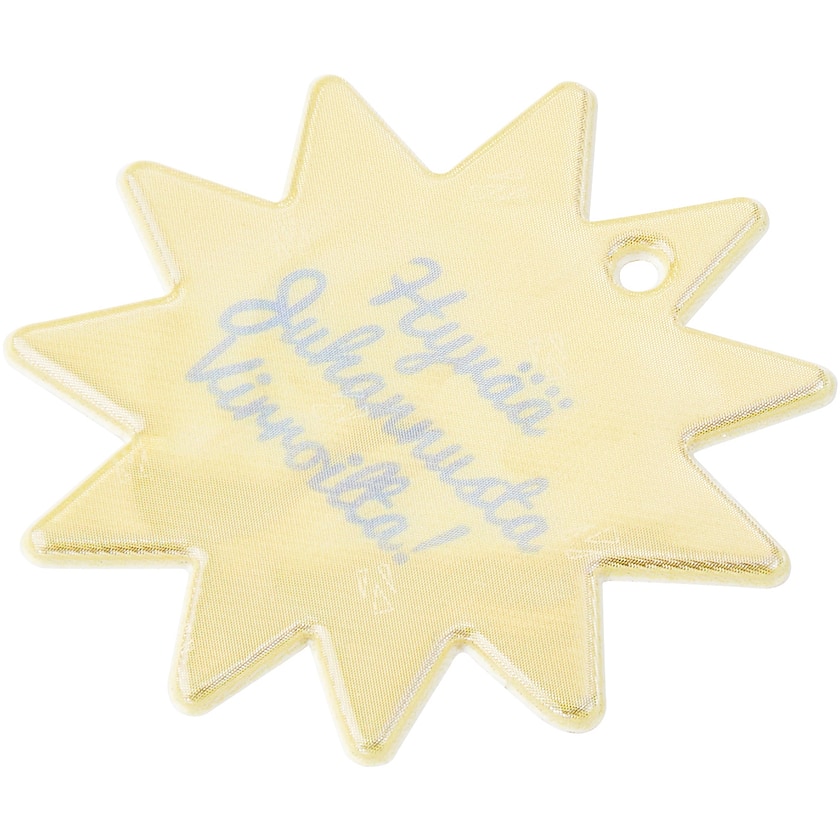Sjov blød refleks udformet som en sol. Medusa leveres enten med snøre samt sikkerhedsnål eller drejeled. Refleksmaterialet er godkendt i henhold til EN13356:2001. Trykket sker under refleksoverfladen for ikke at minimere refleksens ydeevne negativt.