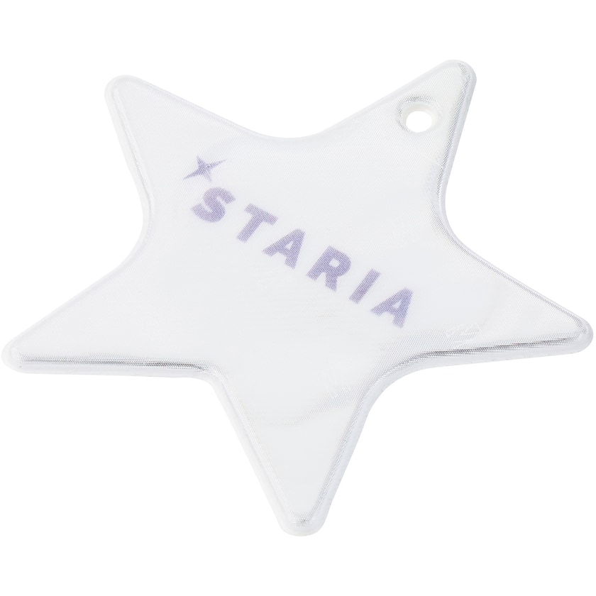 Blød refleks udformet som en stjerne. Bliver enten leveret med snøre og sikkerhedsnål eller drejeled. Refleksmaterialet, som enten kan fås i hvid eller gul farve, opfylder EN13356:2001. Trykket sker under refleksoverfladen for ikke at minimere refleksens ydeevne.