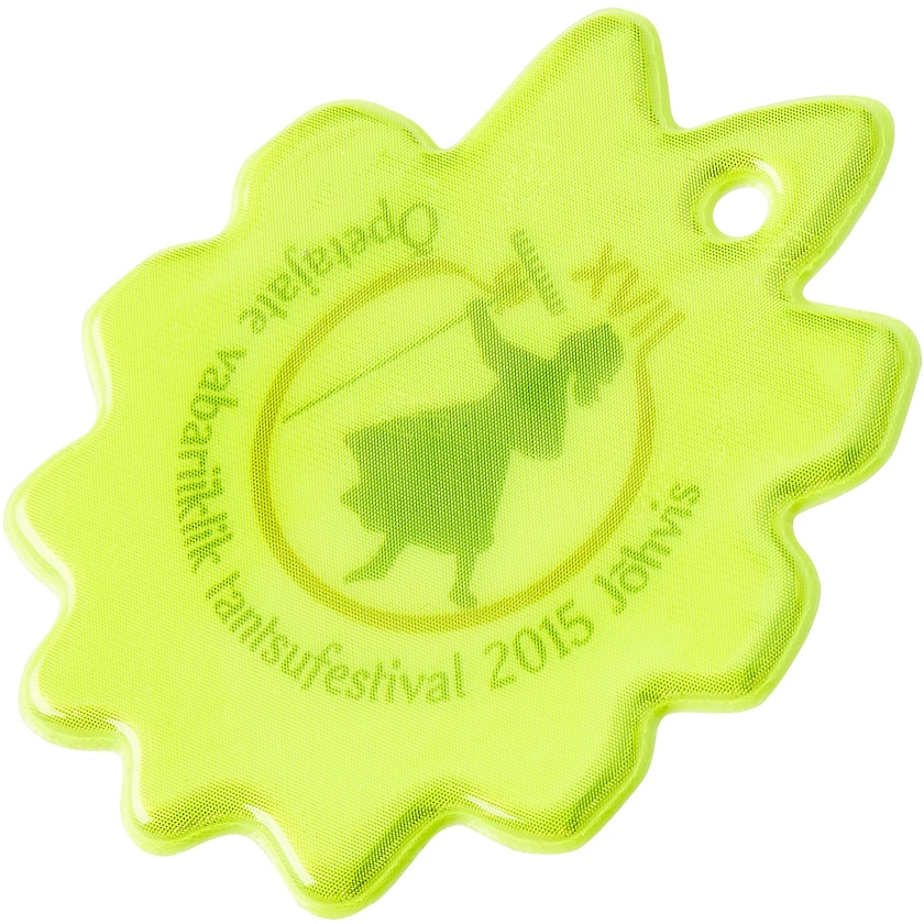 Blød refleks som får en til at drømme om sommer. Bliver enten leveret med snøre og sikkerhedsnål eller drejeled. Refleksmaterialet er fra 3M og opfylder alle krav i henhold til EN13356:2001. Trykket sker under refleksoverfladen for ikke at minimere refleksens ydeevne.