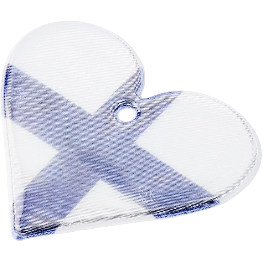 Blød refleks udformet som et hjerte som leveres enten med snor, sikkerhedsnål eller kuglelænke. Bliver enten leveret med snøre og sikkerhedsnål eller drejeled. Refleksmaterialet er fra 3M og opfylder alle krav i henhold til EN13356:2001. Trykket sker under refleksoverfladen for ikke at minimere refleksens ydeevne.