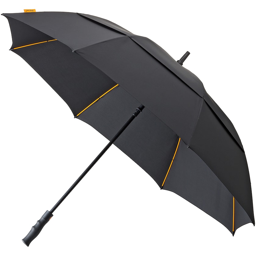 Højkvalitets golfparaply konstrueret i glasfiber. Paraplyen har et ventilationssystem og et håndtag i gummi. Leveres i et opbevaringsetui.