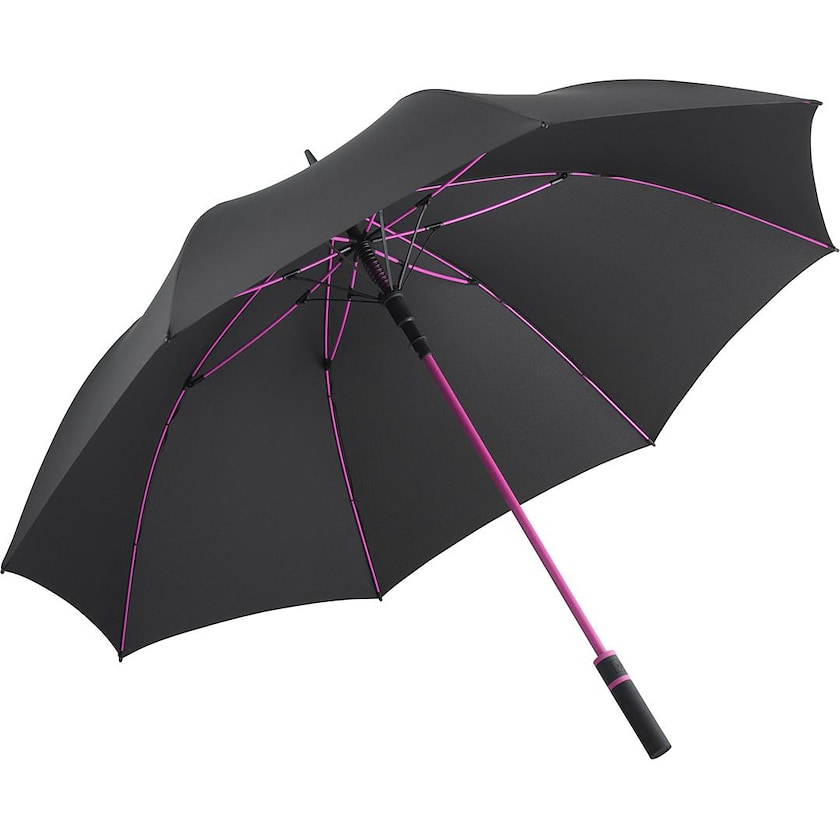 Stormsikker golfparaply med kontrastfarvede detaljer. Ribberne er af glasfiber og paraplystangen af robust stål. Stoffet er fremstillet af genbrugspolyester. De kontrastfarvede ribber og paraplystangen giver paraplyen karakter.