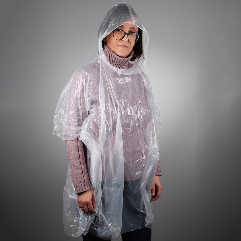 Billig regnponcho i opbevaringsbøtte med løkke. Trykket laves på bøtten. Perfekt til at have med i rygsækken eller i håndtasken.