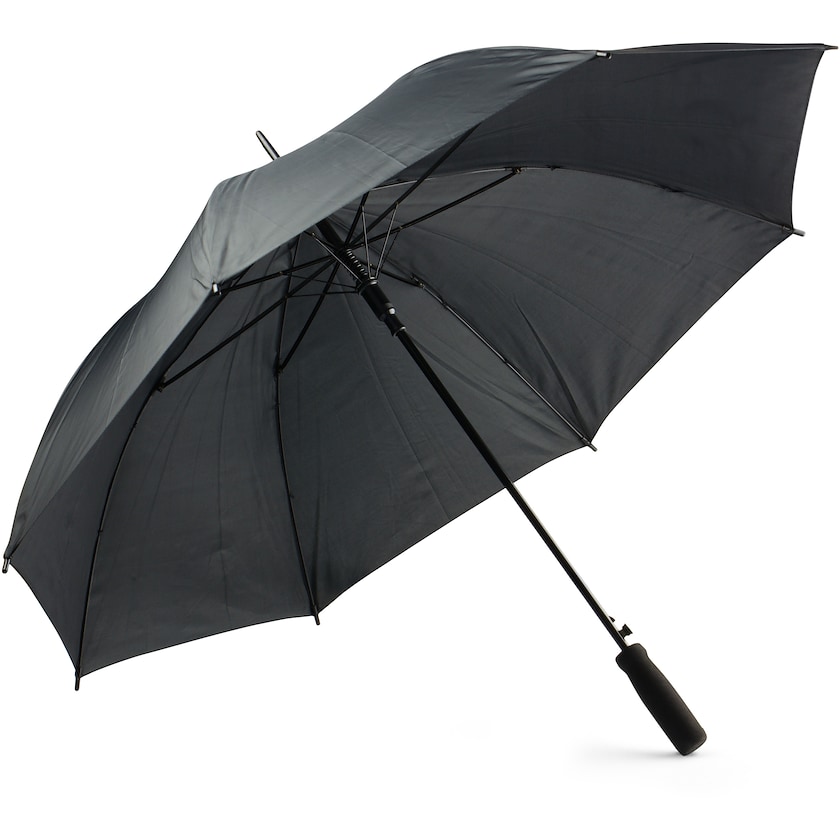 Prisvenlig ensfarvet paraply med bekvemt skumhåndtag. Paraplyen slås op automatisk.
