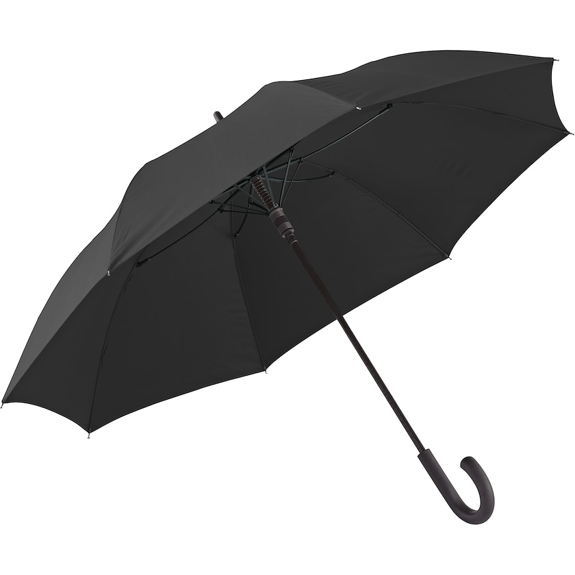 Flot paraply med paraplystang og stel i fiberglas. Paraplyen er automatisk, stormsikker og har et håndtag med gummi. En både flot og højkvalitets paraply.