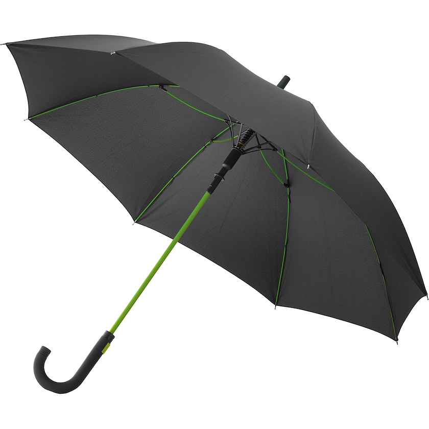Stormsikker paraply med kontrastfarvet paraplystang. Paraplystellet er lavet af fiberglas og håndtaget er med gummi. En unik, højkvalitets paraply!